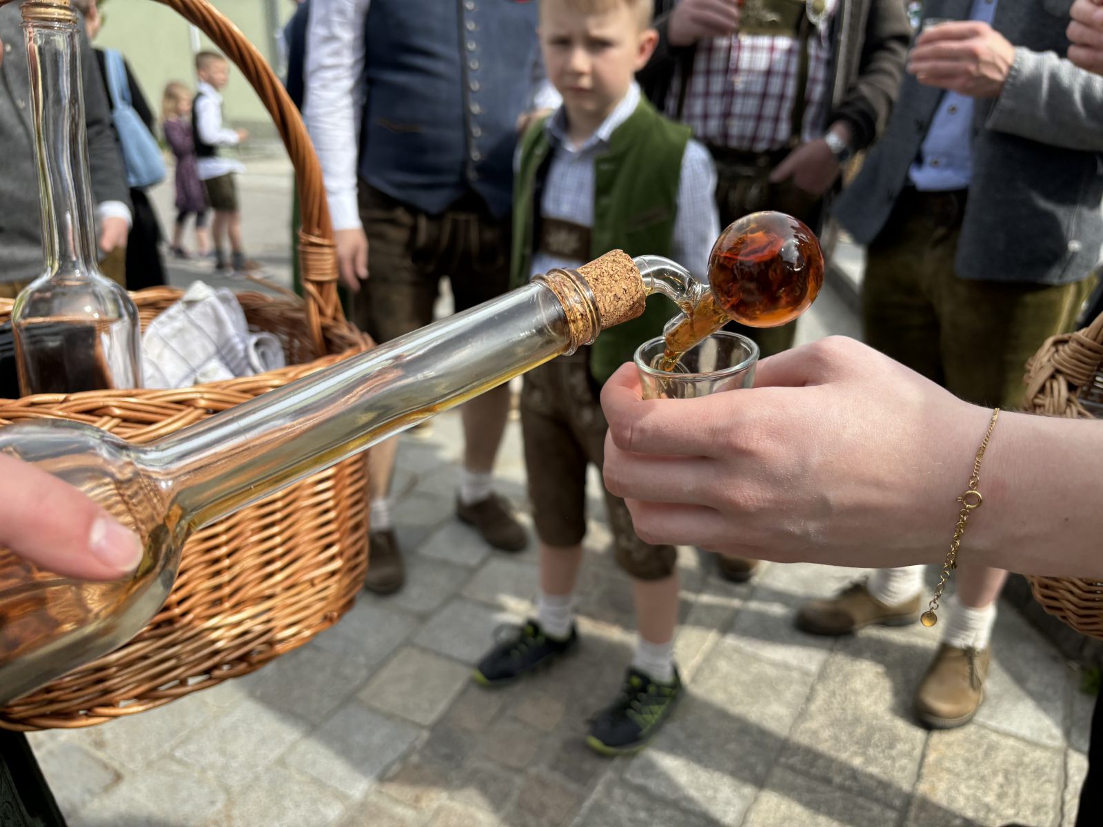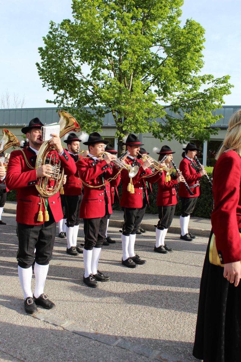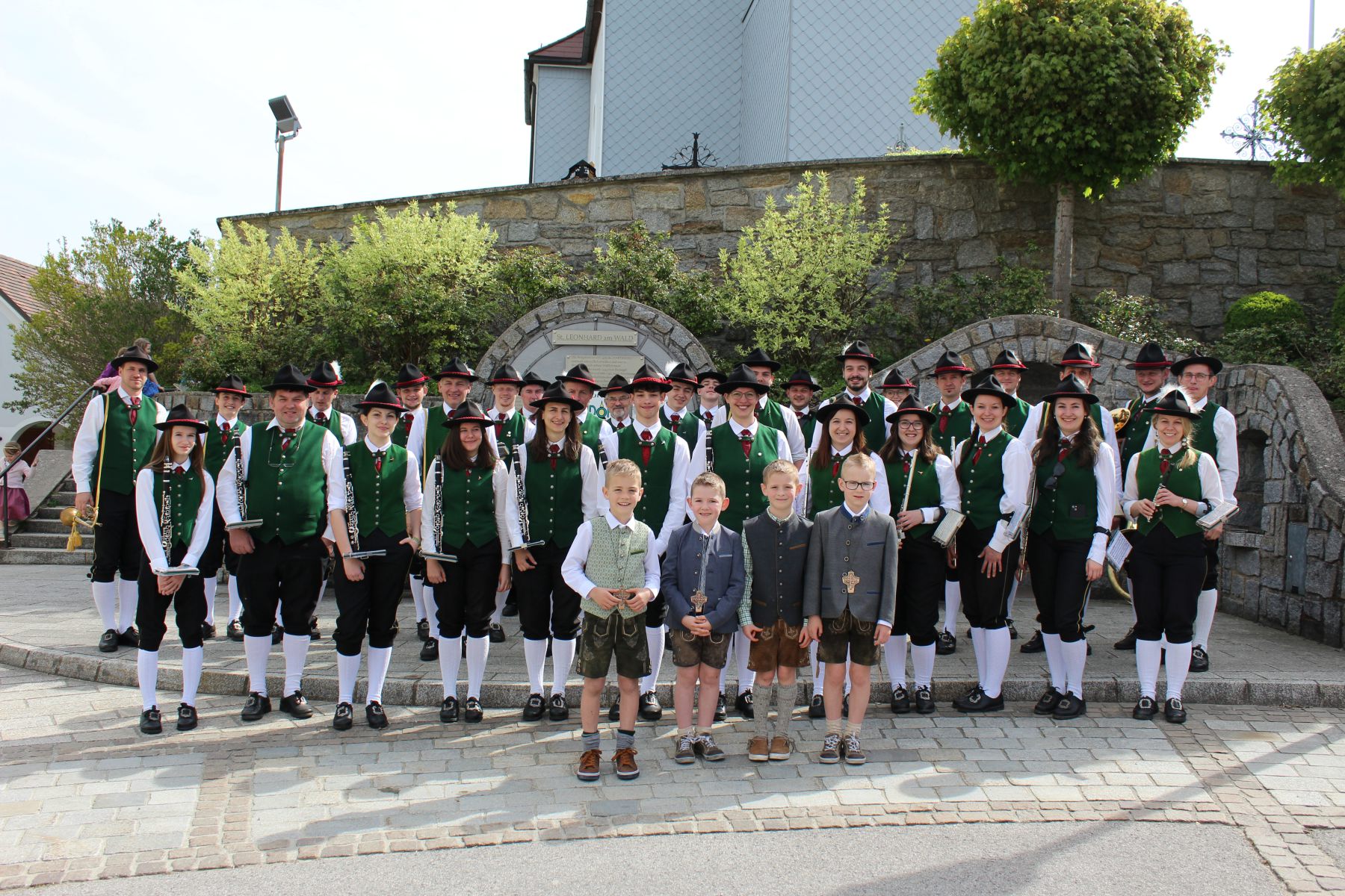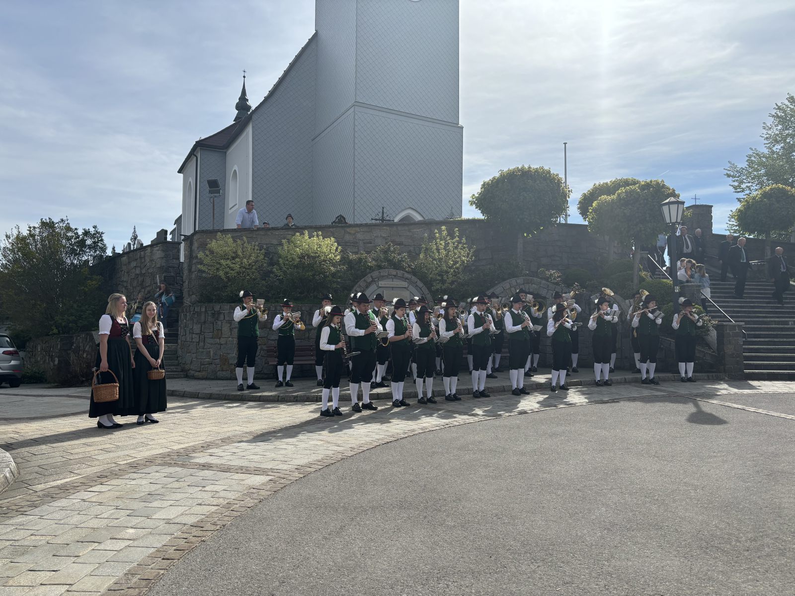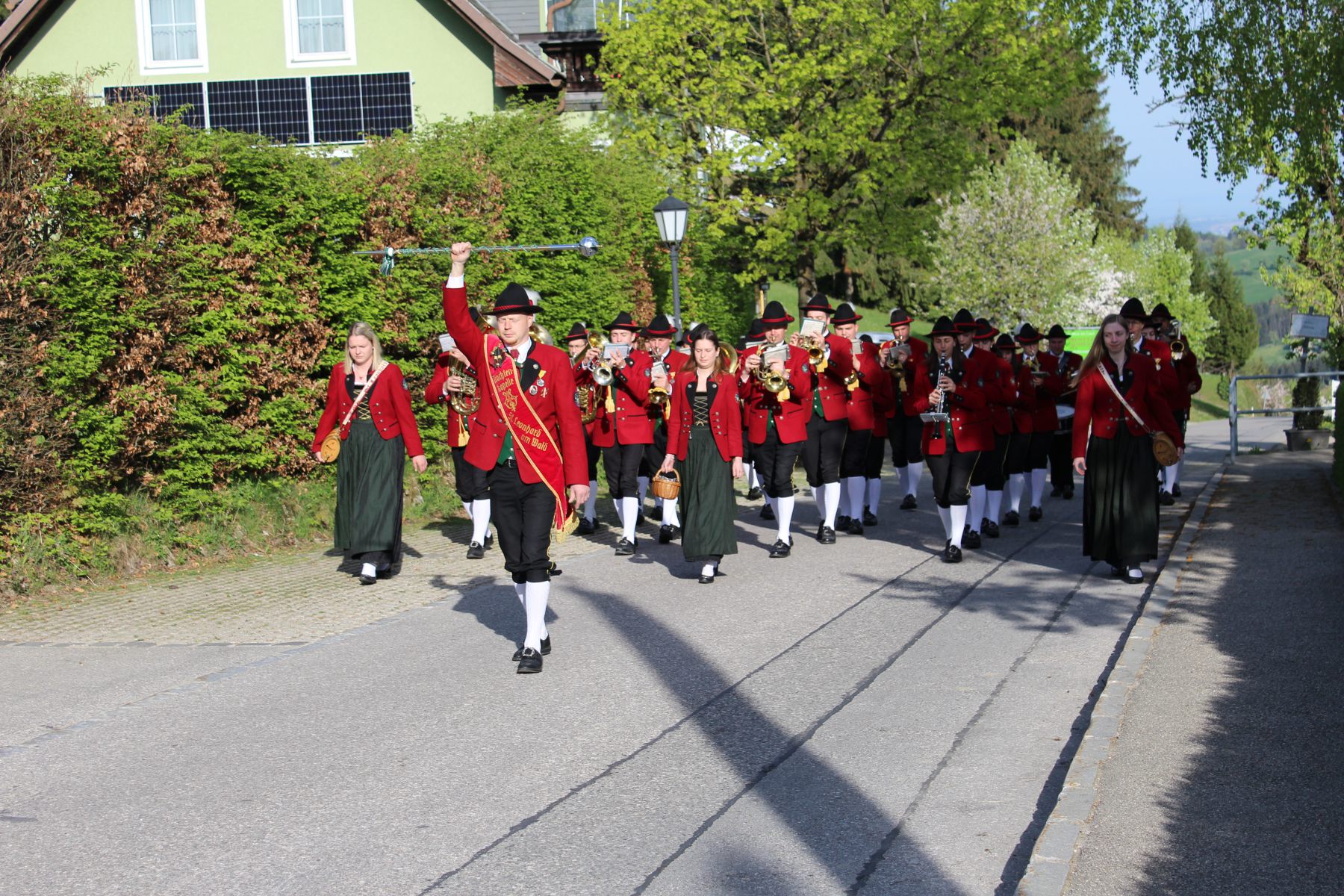 Am sonnigen Sonntagmorgen, des 14. Aprils, marschierten wir durch das Dorf zur Volksschule. Dort warteten die Erstkommunionskinder mit ihren Familien auf ihren großen Moment. Nach ein paar Märsche begleiteten wir sie musikalisch zur Kirche. Nach der Heiligen Messe spielten wir noch mehrere Stücke am Dorfplatz, stießen auf den Geburtstag von Paul an und genossen den warmen Frühlingstag.