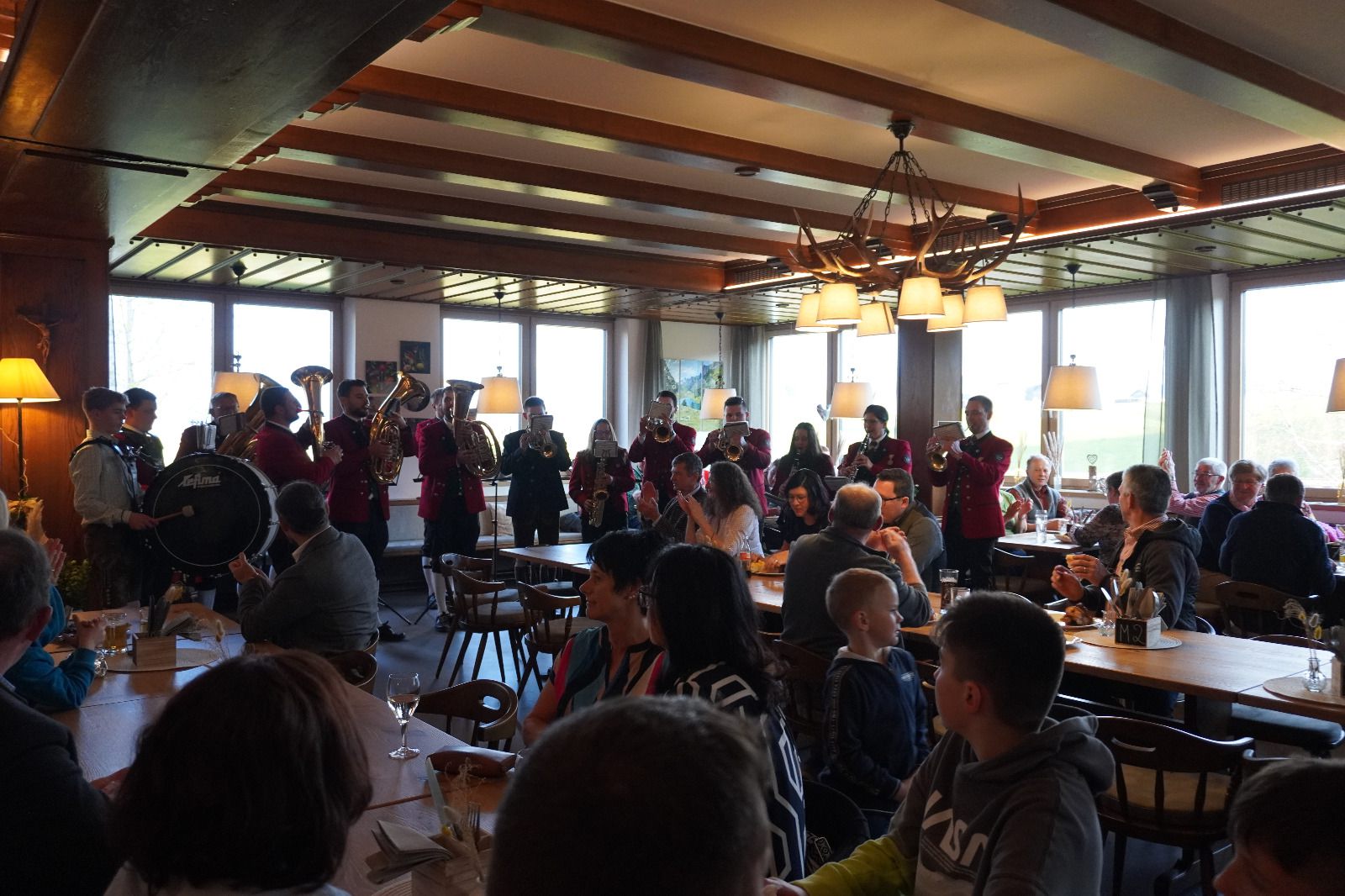 Nach vielen Wochen des ungeduldigen Wartens war es am Samstag, dem 29. April, endlich so weit: Der frisch renovierte „Leonhardihof“ öffnete seine Pforten und neben sehr vielen Neugierigen waren natürlich auch wir dabei – natürlich nicht nur, um die Räumlichkeiten zu begutachten, sondern um die offizielle Eröffnung auch musikalisch zu einem Erfolg zu machen. Wir wünschen den jungen Wirtsleuten weiterhin viele Besucher und freuen uns – ob in Zivil oder in Musiktracht – noch oft im „Leonhardihof“ vorbeizukommen.
