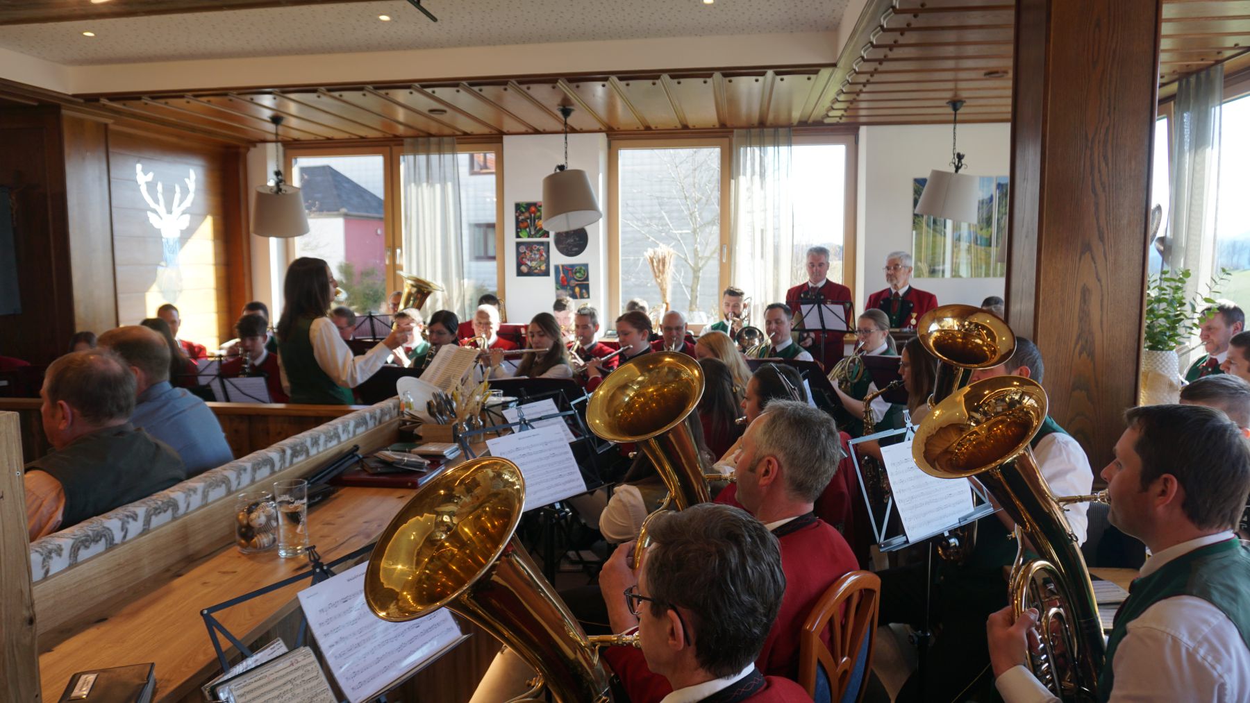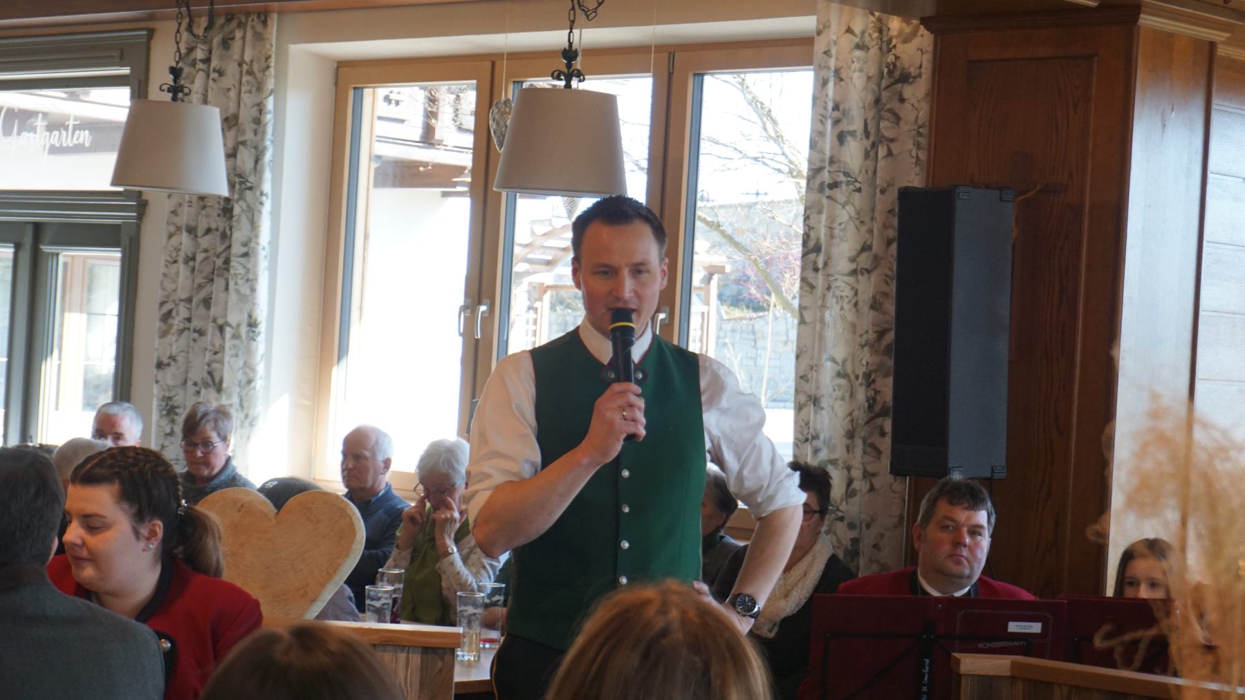 Kapellmeister Sebastian Heigl bezieht sich in seinem Bericht auf die Gestaltung der hl. Messe, bei der der Kanon in D-Dur von Johann Pachelbel gespielt wurde. Bei diesem zieht sich die Basslinie als Konstante durch das Stück, das sind acht Töne, die vom tiefen Blech 24-mal im Kreis zu spielen sind – dabei war schon in den Proben viel Geduld und Idealismus nötig. „Ich finde, dass es in der Musik, aber auch in der Gemeinschaft genau darum geht“, so der Kapellmeister. „Dass man nämlich aus etwas Einfachem ganz viel machen kann, indem man seine Funktion in der Gemeinschaft findet und anerkennt – dann funktioniert das und gemeinsam kann man viel schaffen!“ Und wie viel man schafft, zeigte sich allein in den Proben 2023: Sage und schreibe 38 Gesamtproben und dazu weitere 43 Registerproben wurden abgehalten, um für das Frühjahrskonzert sowie die Konzertwertung optimal vorbereitet zu sein. „Der Aufwand lohnt sich!“, lautete das Resümee des Kapellmeisters, als er an ein tolles Frühlingskonzert und eine erfreuliche Konzertwertung zurückdachte. „Danke fürs Mitmachen!“ Dabei bezog er sich dann auch auf das Publikum, „denn ohne euch wäre das, was wir machen, nur halb so viel wert“, so Sebastian Heigl, bevor ausnahmsweise die Musikanten für ihre Zuhörer applaudierten.
