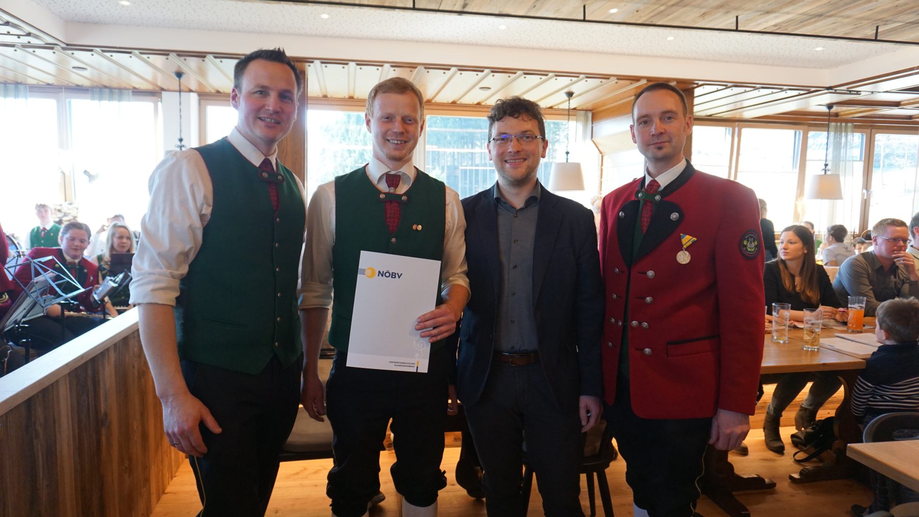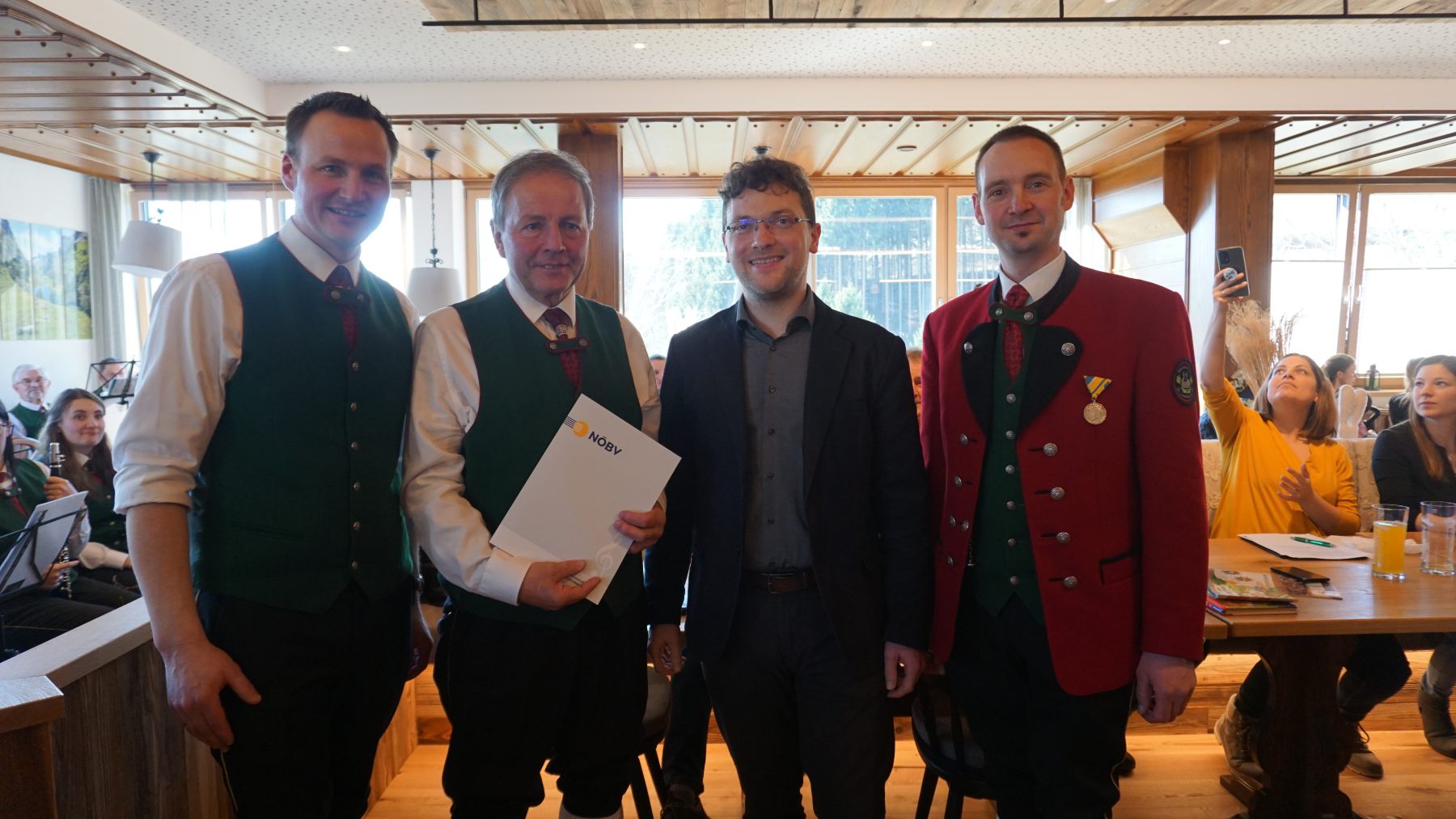 Es ist eigentlich selbstverständlich, dass die Jahreshauptversammlung einer Musikkapelle nur auf eine Art und Weise beginnen kann – nämlich musikalisch. Und damit ist nicht nur die Fanfare gemeint, die zum Beginn der Jahreshauptversammlung zum Besten gegeben wurde, sondern bereits die Gestaltung der hl. Messe. Von dieser schwärmen im Anschluss auch die Ehrengäste, unter anderem Bgm. Werner Krammer, Kultur-StR Gudrun Schindler-Rainbauer, Bezirks-Stabführer Peter Steinbichler und GR Josef Frühwald.
