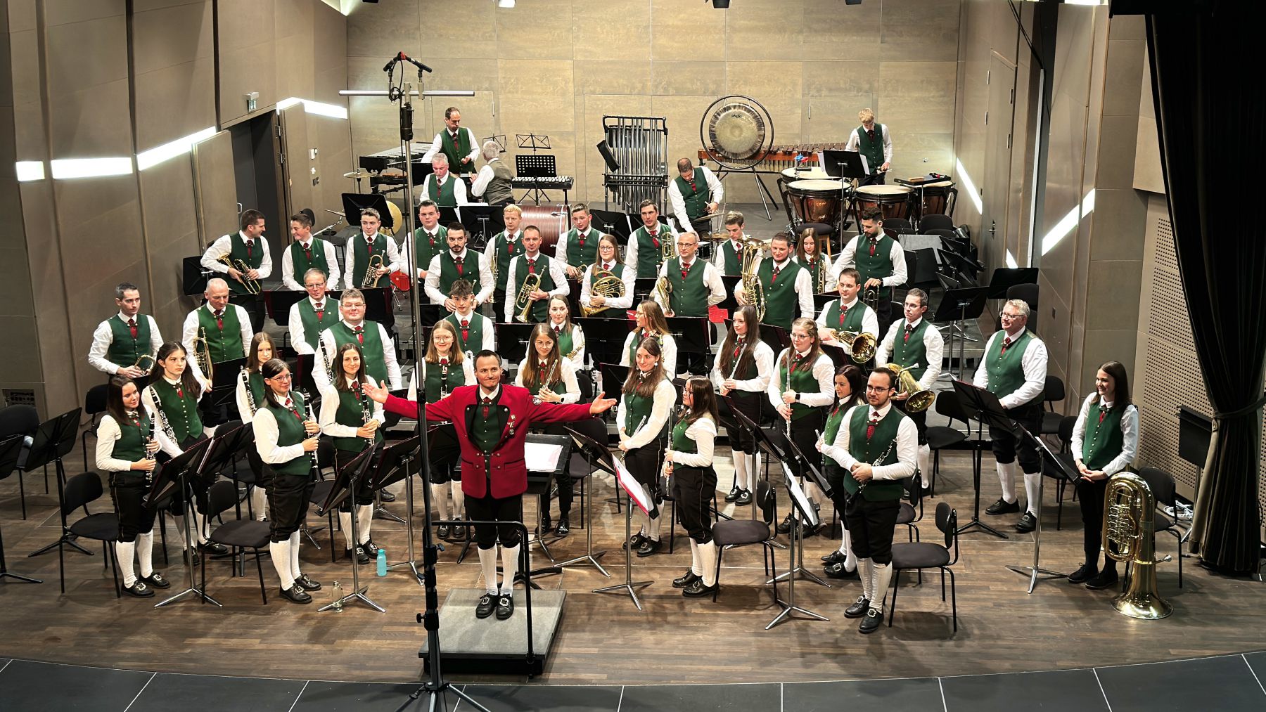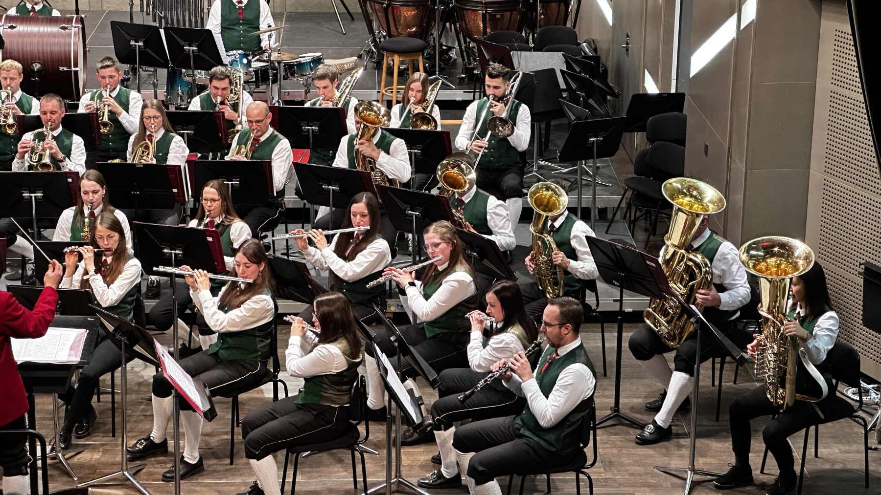 Bei Maria Empfängnis am 8. Dezember traf man uns, wie schon seit vielen Jahren, im Plenkersaal zur Konzertwertung. Mit dem diesjährigen Pflichtstück „Caledonia“ und dem Wahlstück „New York Overture“ überzeugten wir in der Stufe C die Juroren und die Zuhörer mit 89,17 Punkten! Dieses Jahr wurde ein neues Bewertungssystem eingeführt, wodurch nach dem Wertungsspiel Mitglieder der Kapelle zu einem Gespräch eingeladen wurden, wo sie die Bewertung erfuhren und erst später wurden auch die Zuhörer über das Ergebnis informiert. Nach der offiziellen Ergebnisübergabe feierten wir gemeinsam im Musikheim mit Schnitzelsemmel von Fredi und der großen Weinflasche von „Niglo Draht durch“ – dem 100 Jahre Jubiläum der TMK Konradsheim 2023.