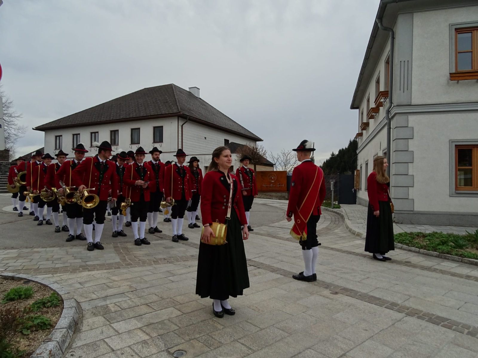 Am 13.4.2025 um 10Uhr begleiteten wir den Pfarrer zur Kapelle, bei der die alljährliche Palmweihe stattfand. Auch ein sehr ruhiger und gelassener Esel wohnte der Weihe bei. Nach der Messe schien die Sonne und lud zum Zuhören unseres kleinen Frühschoppens ein. Auch ein Stamperl Schnaps wurde hier und da getrunken.