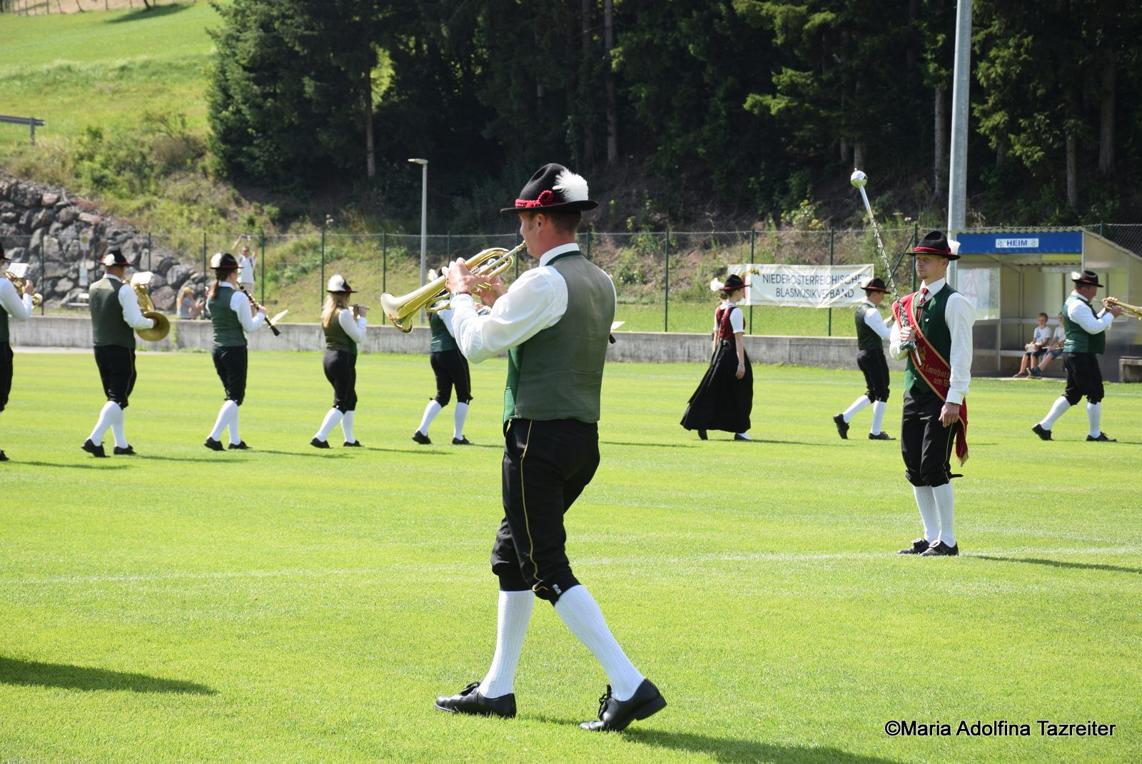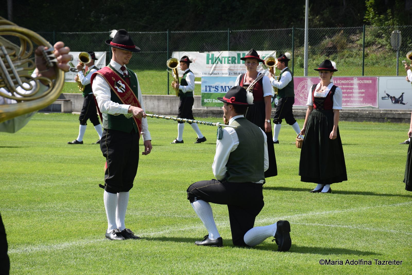 Anders als sonst war die heurige Marschmusikbewertung für uns: Statt dem vertrauten Alpenstadion in Waidhofen marschierten wir nämlich in Ybbsitz, wo wir in Stufe E antraten. Neben Ruetz-Marsch und Olympiade-Marsch änderte sich aber während der Figur unser vertrauter Stabführer. Da wurde nämlich Fedja Helm vom „alten“ Stabführer Johannes Reitbauer zum Stabführer „geschlagen“ – eine wahrhaft ritterliche Stabübergabe. Dafür erhielten wir 90 Punkte.