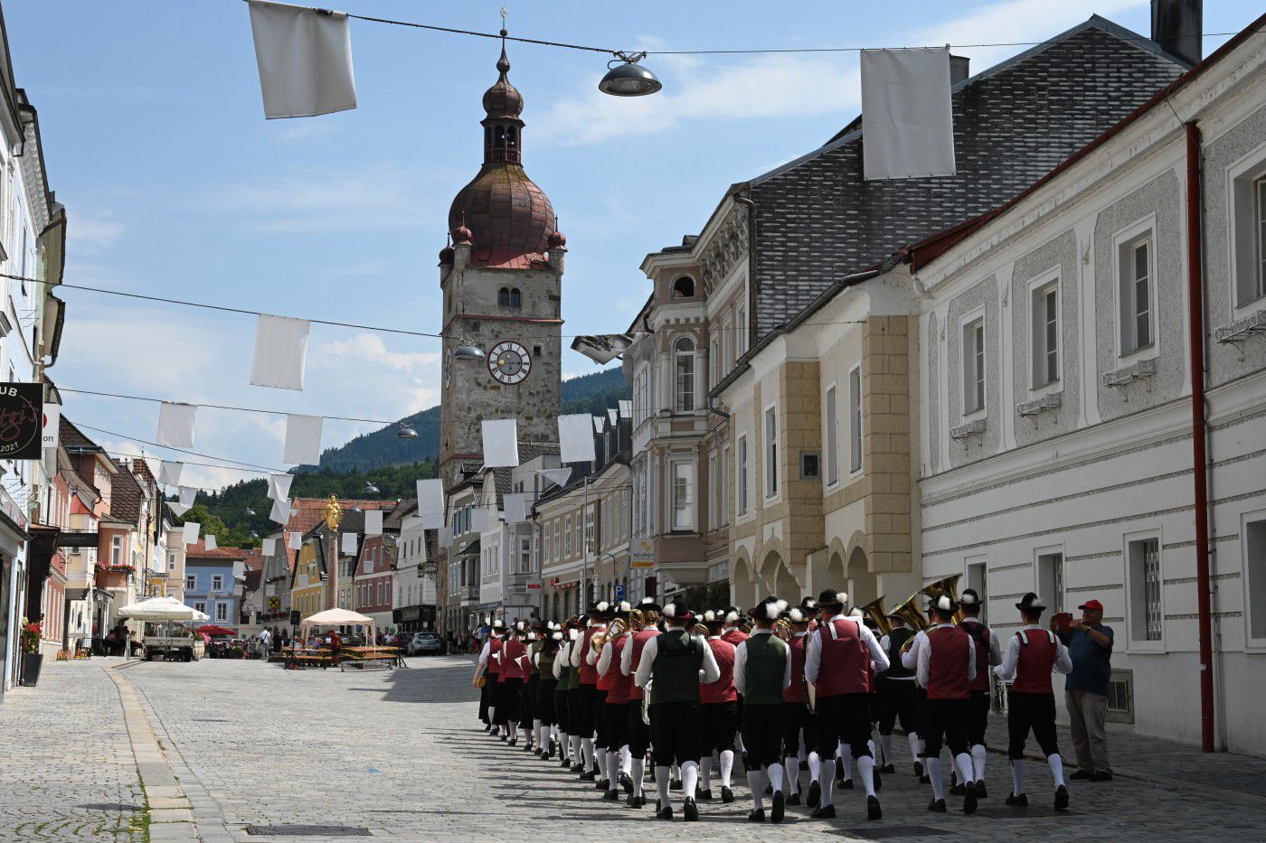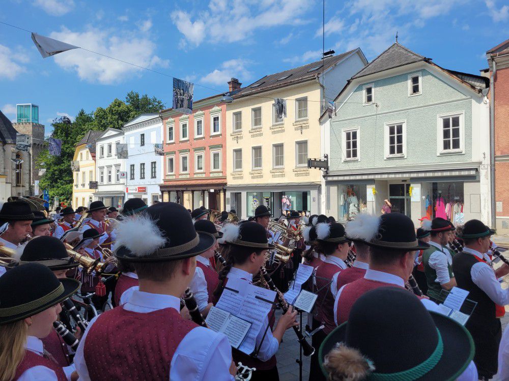 In Waidhofen an der Ybbs fand dieses Jahr das Viertelfestival statt. Unter dem Motto Begegnungszone Oberer Stadtplatz fanden verschiedene Einzelveranstaltungen statt. Wir traten am 5.7.2025 auf, als wir gemeinsam mit Musikkapelle Windhag uns mit den anderen Kapellen in der Mitte des Stadtplatzes begegneten. Auch ein kleines Konzert gaben wir zum Besten.